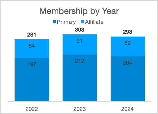 California Inland finished 2024 with 293 total members (204 Primary and 89 Affiliate).  In 2024 we welcomed 28 new members to the club.  Our numbers were down slightly versus 2023 when we had 303 members (212 Primary and 91 Affiliate).